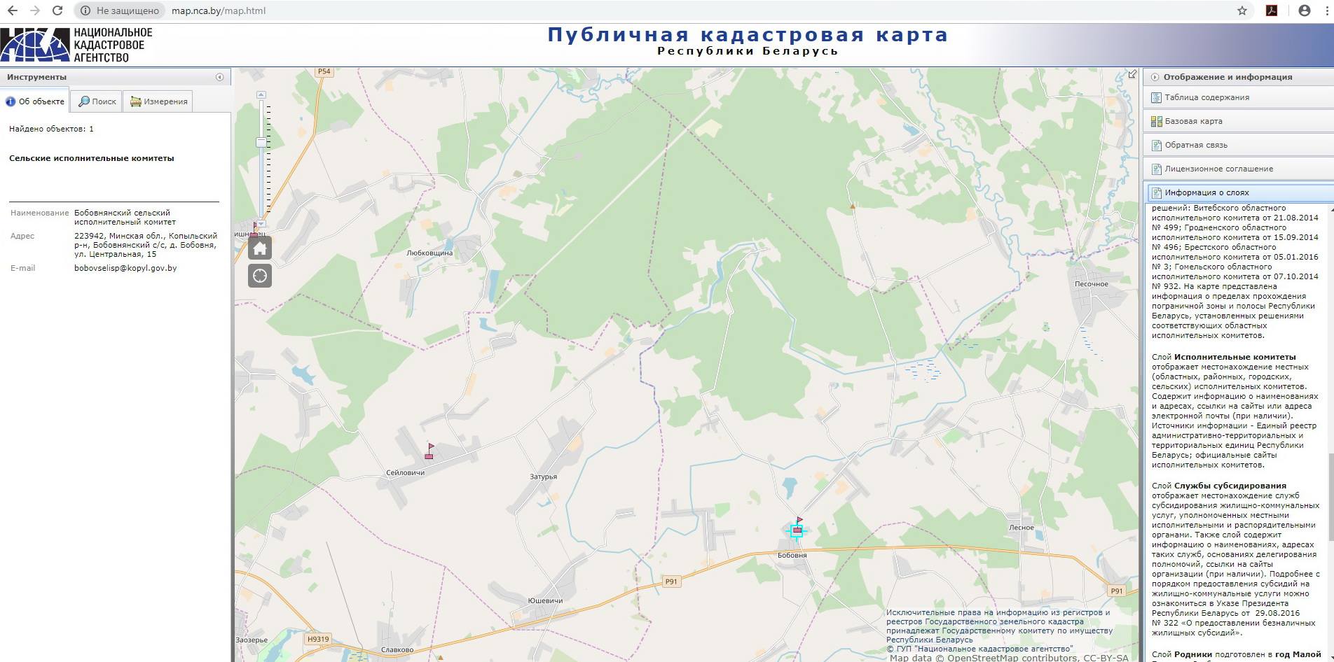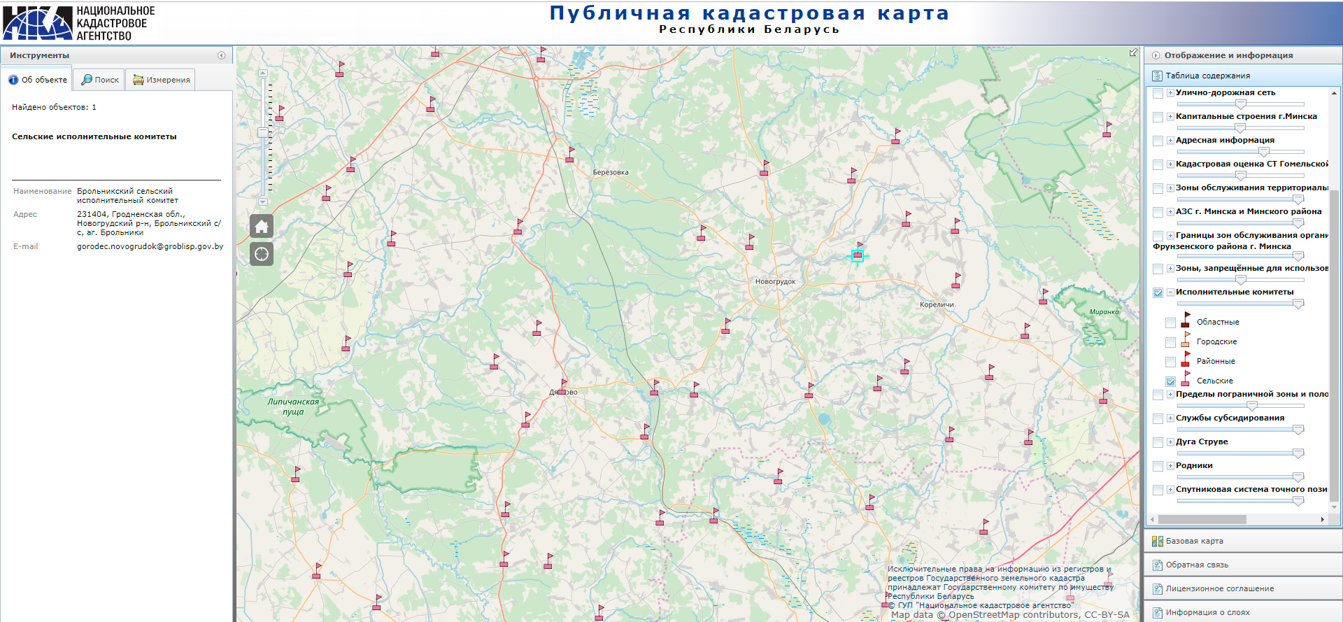 До настоящего времени на карте были обозначены лишь адреса, контактные данные областных и районных исполнительных комитетов. Специалисты по ведению карты охватили вниманием и сельские советы, учет административных центров которых в настоящее время осуществляется в ходе ведения Единого реестра административно-территориальных и территориальных единиц Республики Беларусь.