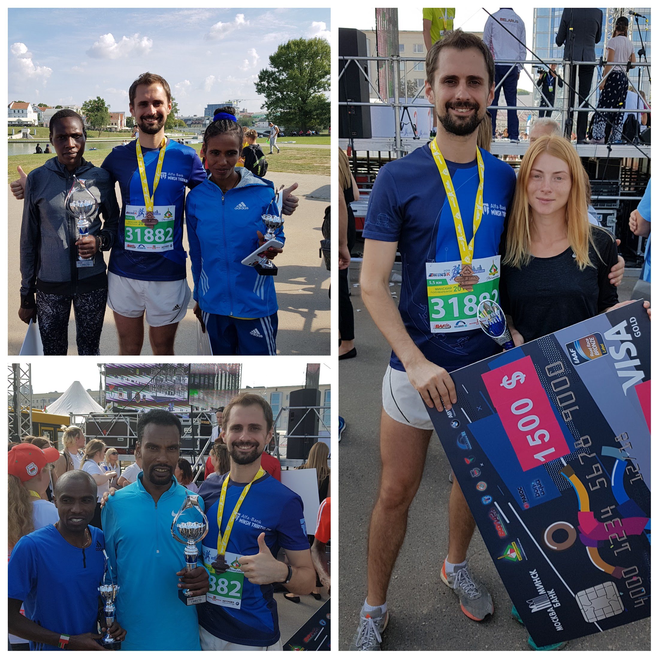 Представитель Госкомимущества вместе с призерами Минского полумарафона на дистанции 21.097 км: слева вверху - 1-ое