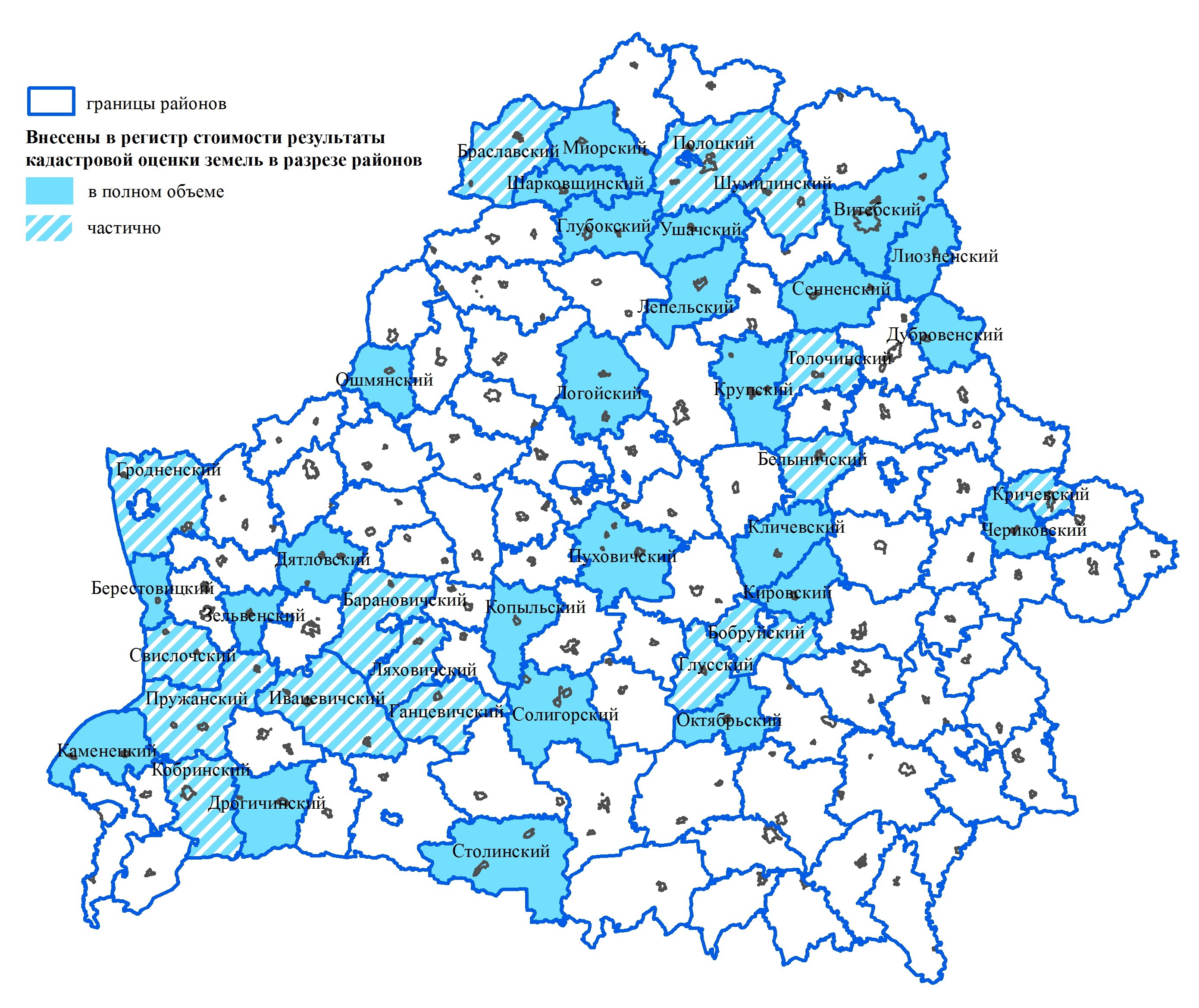 действующими кадастровыми стоимостями земель можно ознакомиться по адресу http://vl.nca.by. Общая картина по результатам, внесенным