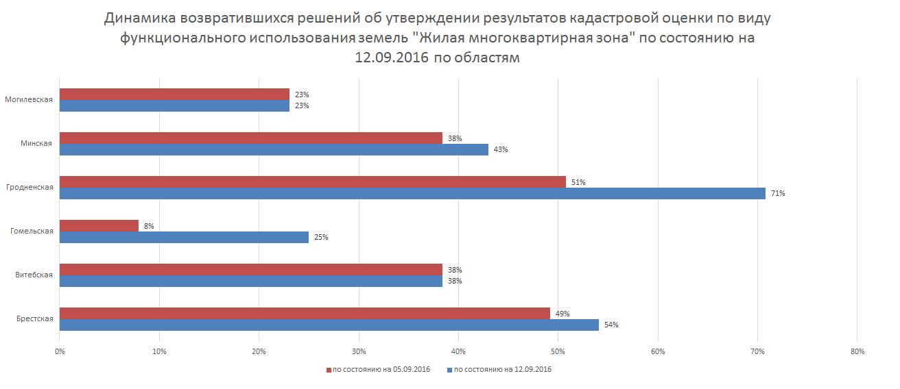 Постепенно увеличивается процент возвратившихся решений от Гомельской области. Опередив Могилевскую область, по состоянию 12 сентября 2016 года, их количество составило 25%.
