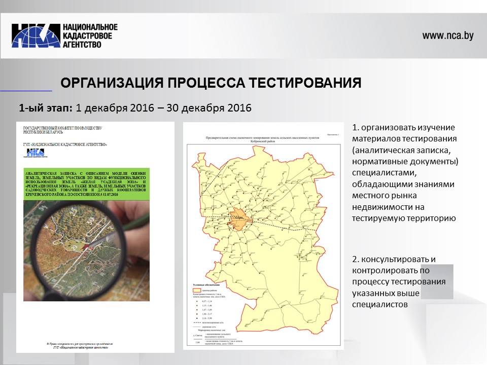 В ходе состоявшейся рабочей встречи специалистов управления оценки Национального кадастрового агентства по теме: «Тестирование моделей оценки по Республике Беларусь», были подведены итоги выполненных работ по кадастровой оценке земель по виду функционального использования «жилая усадебная зона» и «рекреационная зона», а также в целом рассмотрены особенности кадастровой оценки земель Республики Беларусь, правила и условия тестирования моделей оценки.