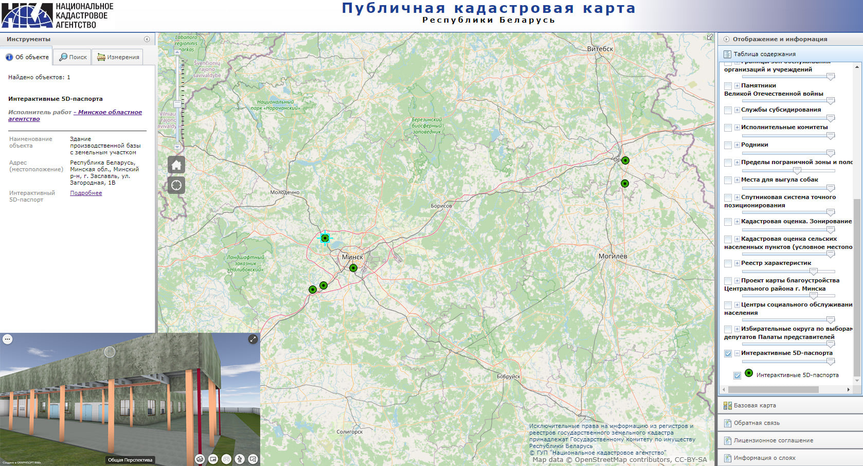 Национальное кадастровое агентство совместно с Минским областным агентством по государственной регистрации и земельному кадастру разработали новый пространственный слой публичной кадастровой карты – «Интерактивные 5D-паспорта». Он содержит информацию об объектах недвижимости, на которые составлены 5D-паспорта.