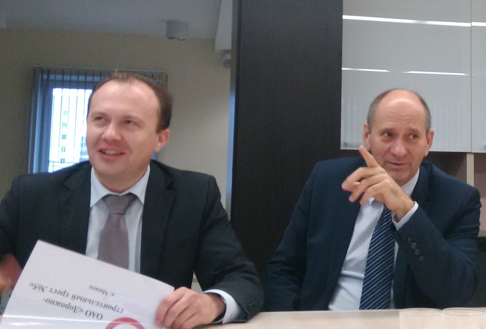 Председатель Государственного комитета по имуществу Республики Беларусь Андрей Гаев вместе с руководителем ОАО «Управляющая компания холдинга «Белавтодор» Юрием Масюком посетили ОАО «ДСТ-5».