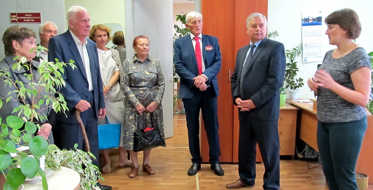 Для ветеранов была организована экскурсия по предприятию, в ходе которой они ознакомились с современными картографо-геодезическим производством и условиями труда в том самом здании, которое в 1979 г. было построено под руководством Александра Александровича Дражнюка.