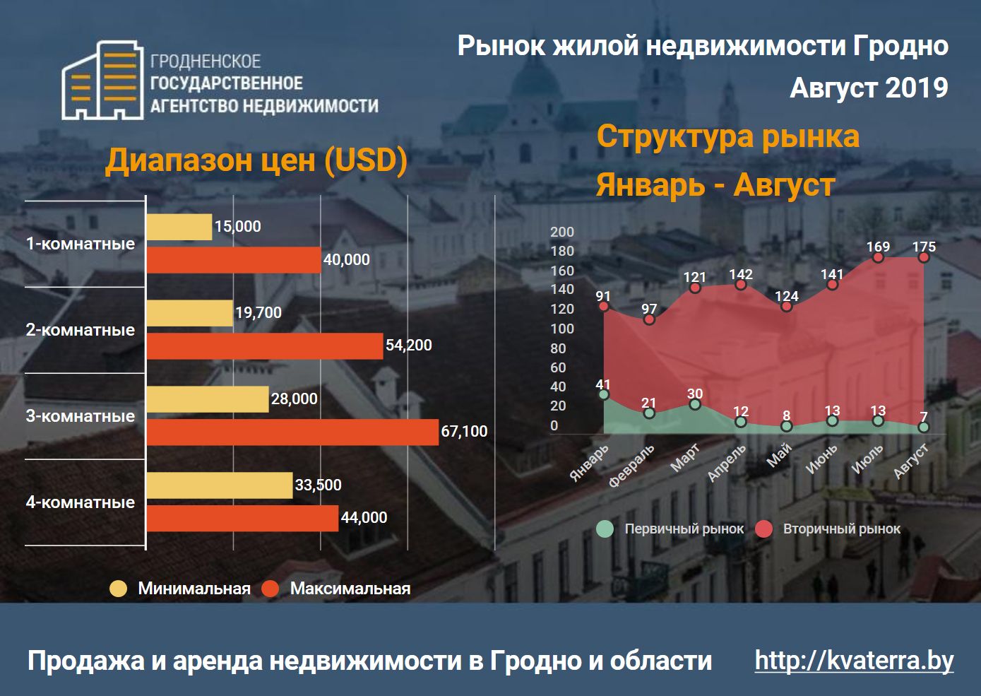 Рынок жилой недвижимости Гродно полностью восстановился после продолжительного спада. Анализ данных из Единого государственного регистра недвижимого имущества за летние месяцы демонстрирует однозначный рост вторичного рынка 1, 2, 3-комнатных квартир. Увеличилось количество сделок, существенно выросли цены.