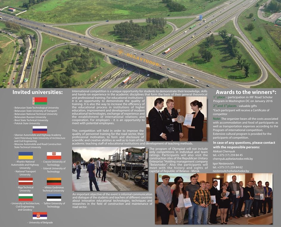 Интеллектуальные состязания будущих специалистов дорожной отрасли пройдут в Минске с 21 по 23 сентября 2016 года.
