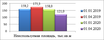 В комитете «Минскгоримущество» рассказали, что в результате проводимой системной и плановой работы по сокращению неиспользуемых площадей их количество по сравнению с аналогичным периодом прошлого года снизилось на 31,0 % или 54,3 тыс. кв.м и составило 121,0 тыс. кв.м.