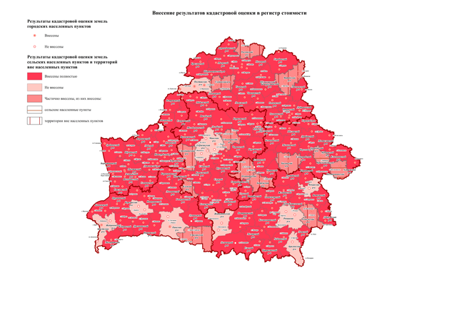 Почти 90% территорий по виду функционального использования земель «общественно-деловая зона» внесены в регистр стоимости. Первым регионом, утвердившим все результаты кадастровой оценки по данному виду функционального назначения земель и внесенным в регистр, стала Гродненская область