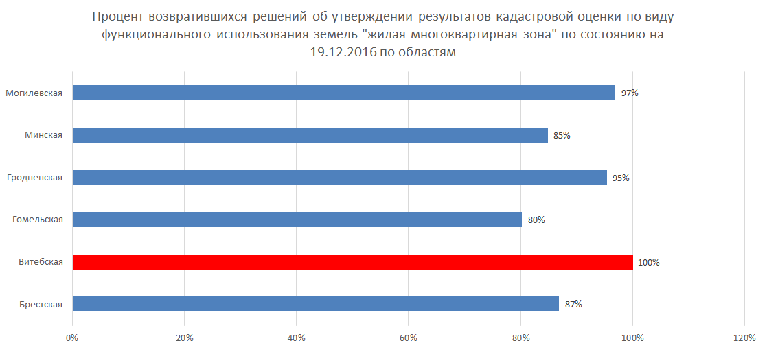Полностью внесены в Регистр стоимости земель, земельных участков государственного земельного кадастра результаты кадастровой оценки земель, земельных участков по виду функционального использования земель «жилая многоквартирная зона» по Витебской области