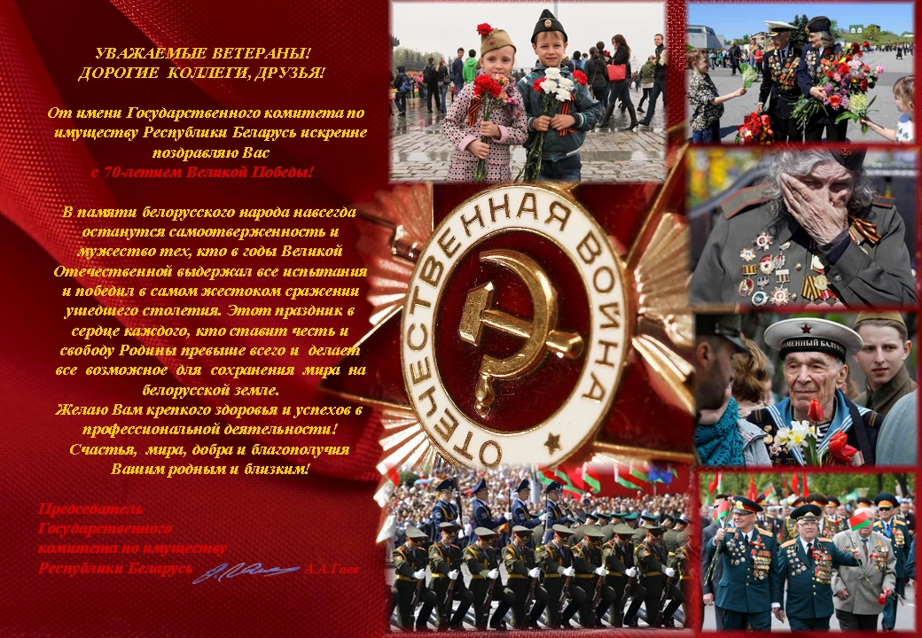 Поздравление Председателя Государственного комитета по имуществу Республики Беларусь Андрея Гаева по случаю праздника 9 мая и 70-летия Великой Победы