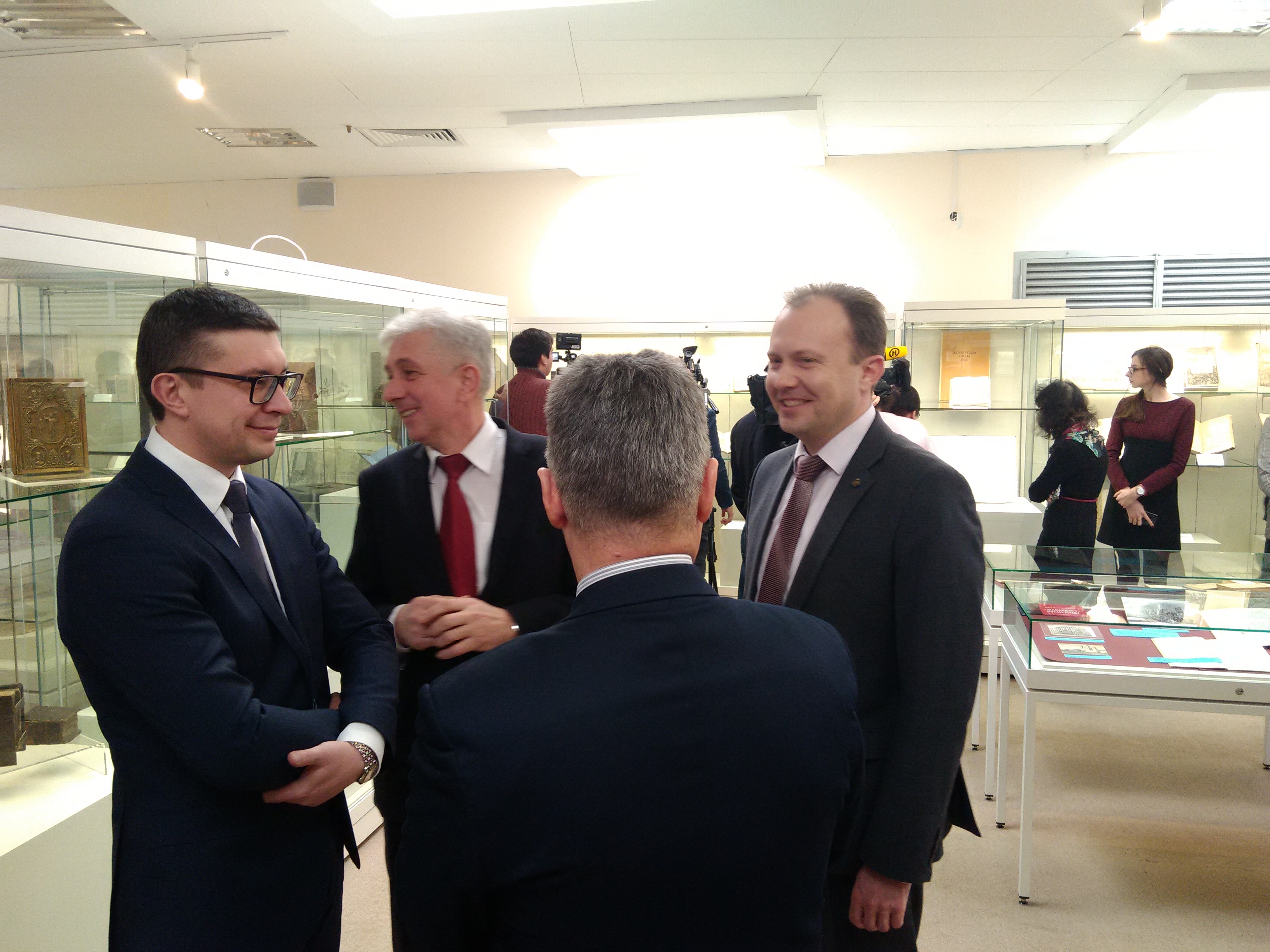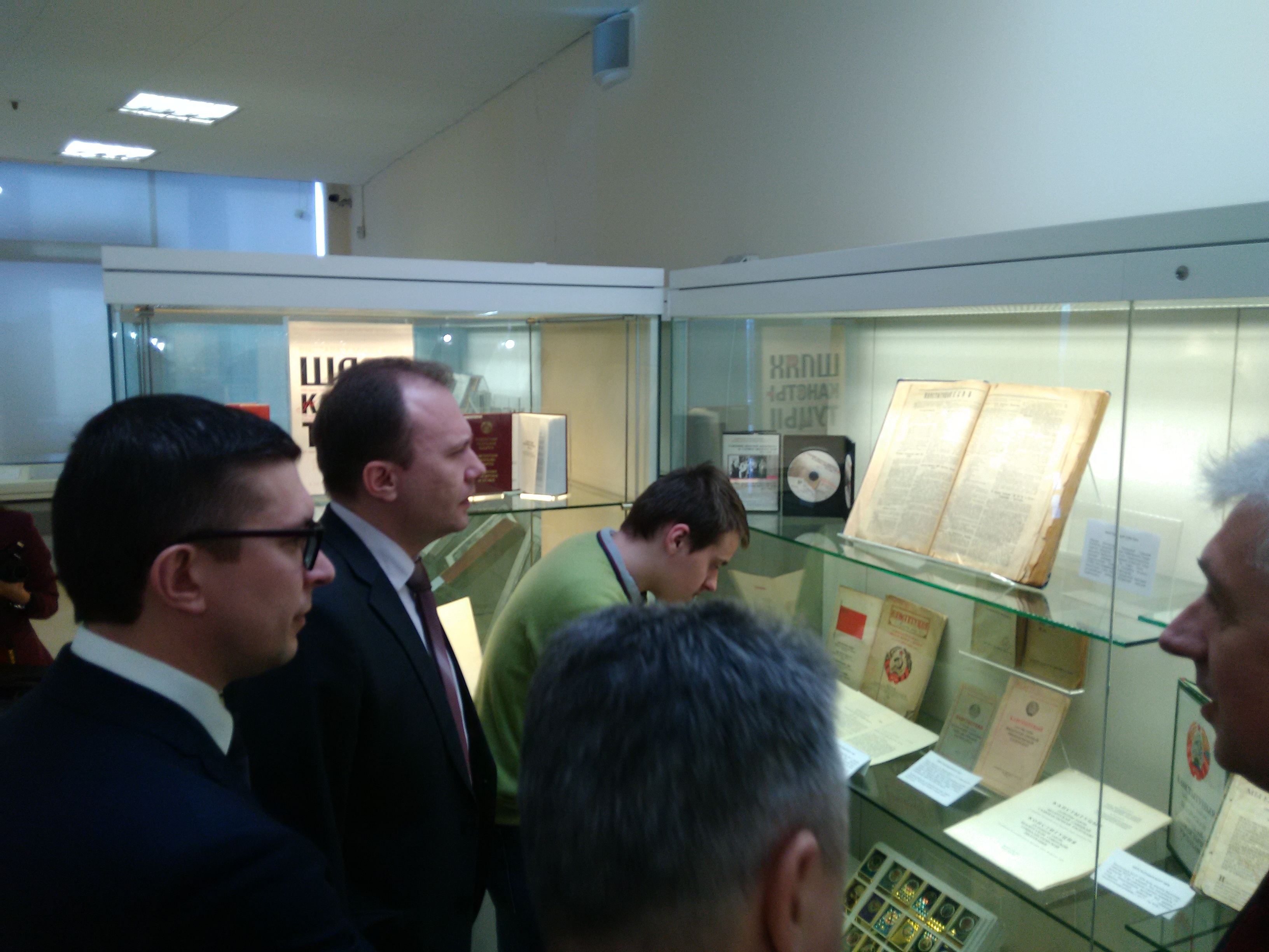 Открыл выставку директор Национальной библиотеки Беларуси Роман Мотульский. В экспозиции представлены все конституционные акты в истории нашей страны за последние 500 лет: уникальные рукописные и старопечатные памятники права, а также издания XIX–XXI веков. Значительная часть выставки посвящена Статуту ВКЛ.