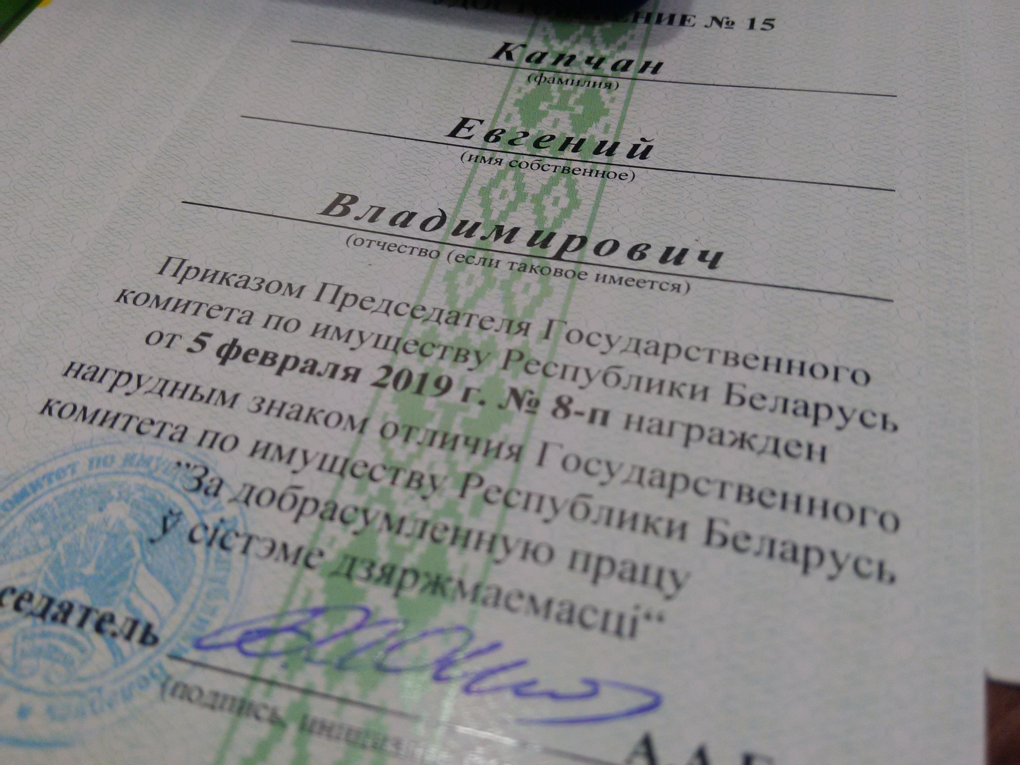 Заслуги Евгения Владимировича были также отмечены Благодарностью Главы государства и Почетной грамотой Совета Министров Республики Беларусь.