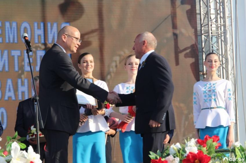Центральным событием фестиваля стало чествование лучших аграриев области. Так, по итогам смотра-конкурса «Землепользование высокой культуры земледелия, благоустройство машинных дворов, животноводческих ферм и комплексов» Дмитрий Матусевич вручил дипломы Государственного комитета по имуществу Председателю Дзержинского райисполкома Николаю Артюшкевичу и первому заместителю Председателя Андрею Атрушкевичу.