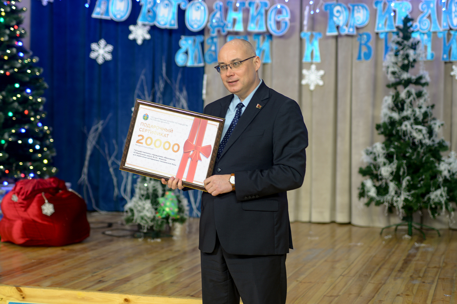 Председатель Госкомимущество вручил директору школы Наталье Кравчук сертификат на оказание спонсорской помощи для укрепления материально-технической базы, подарил школе спортивный инвентарь, а все воспитанники учреждения получили сладкие наборы.