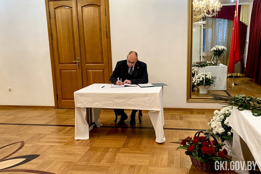 Председатель Госкомимущества Дмитрий Матусевич посетил Посольство Китайской Народной Республики в Минске и оставил запись в книге соболезнований в связи с кончиной бывшего Председателя Китайской Народной Республики Цзян Цзэминя.