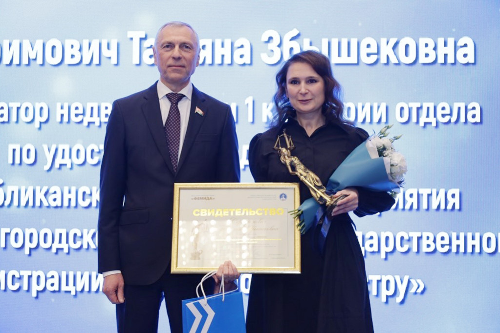 Так, регистратор недвижимости отдела по удостоверению договоров Минского городского агентства по государственной регистрации и земельному кадастру Татьяна Серафимович была удостоена награды в номинации «Государственная регистрация недвижимости».