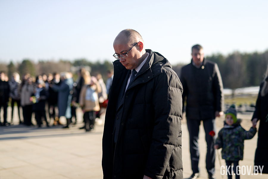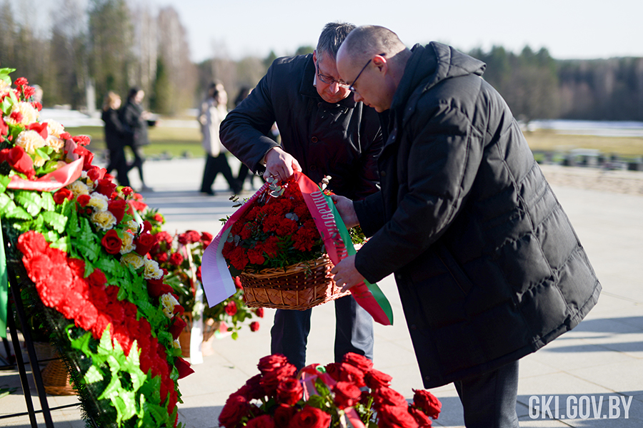 Делегация Государственного комитета по имуществу во главе с Председателем Дмитрием Матусевичем приняла участие в возложении цветов у Вечного огня в мемориальном комплексе «Хатынь» по случаю 80-летия со дня трагедии.