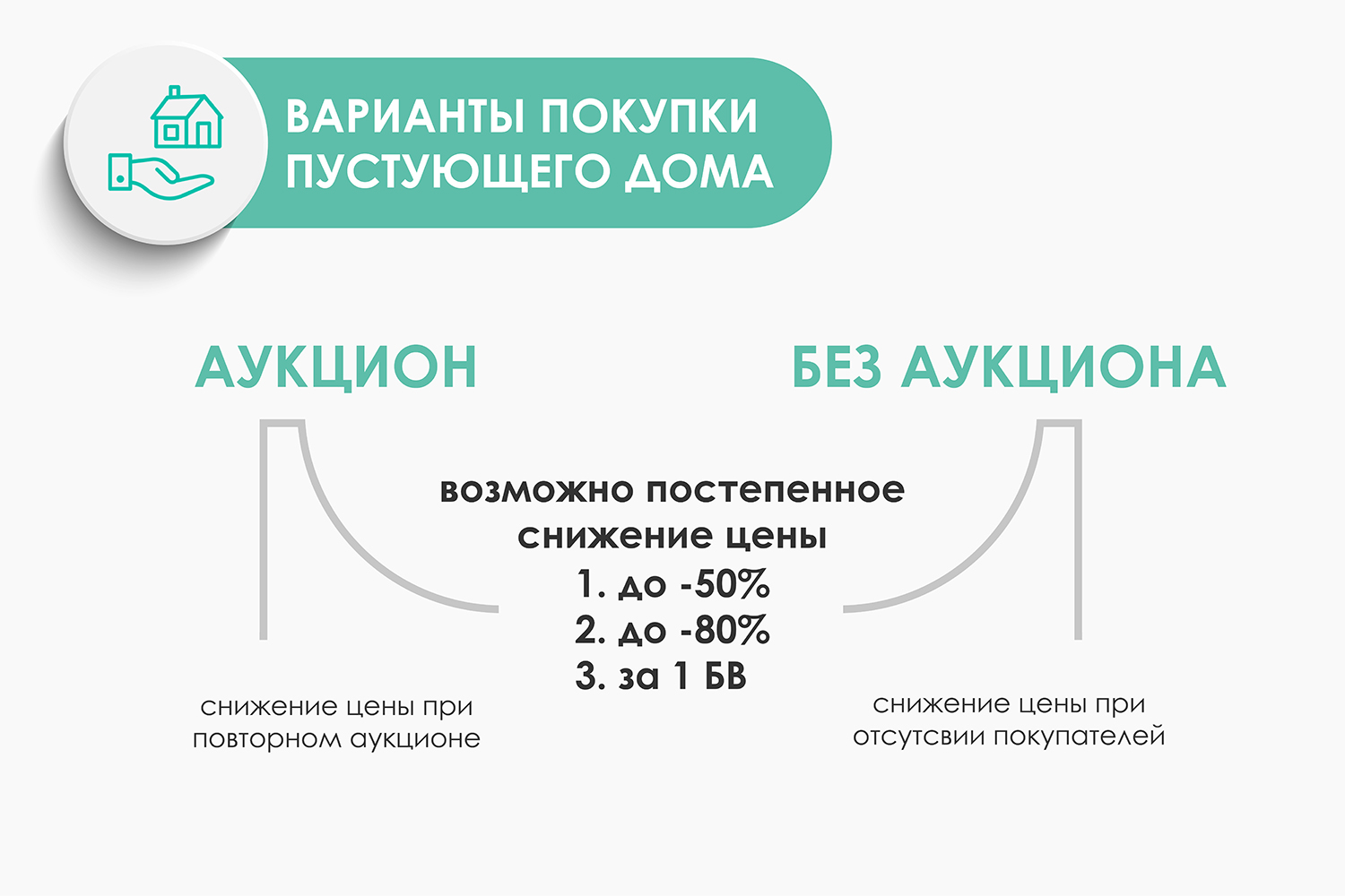 Продажа пустующих жилых домов возможна на аукционе, без его проведения, а также в формате электронных торгов.