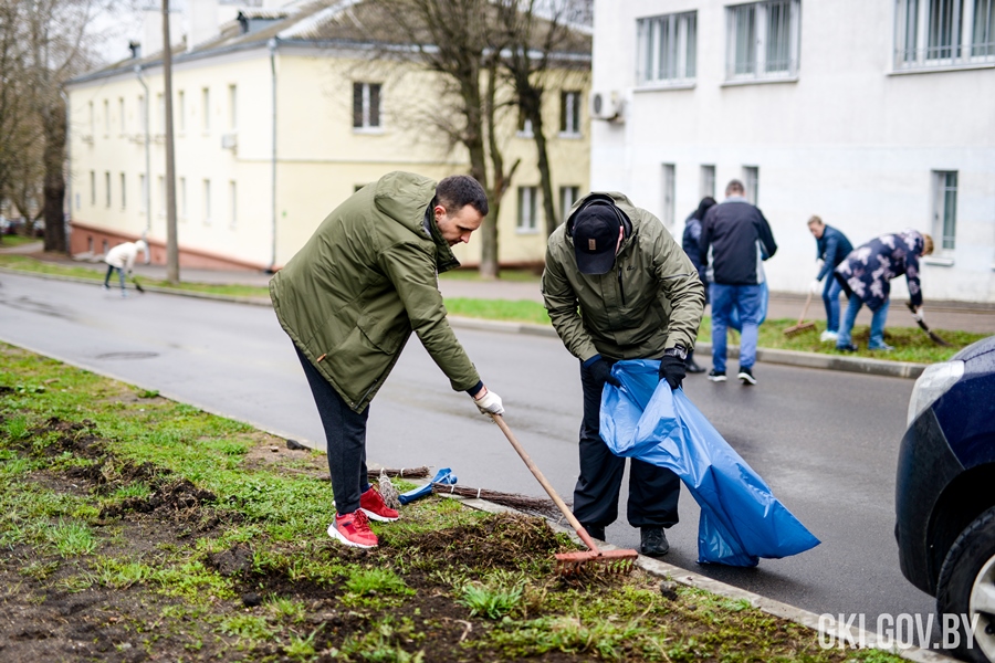 В минувшие выходные представители Государственного комитета по имуществу во главе с Председателем Дмитрием Матусевичем присоединились к республиканскому субботнику и навели порядок на прилегающей к комитету территории и на рабочих местах.