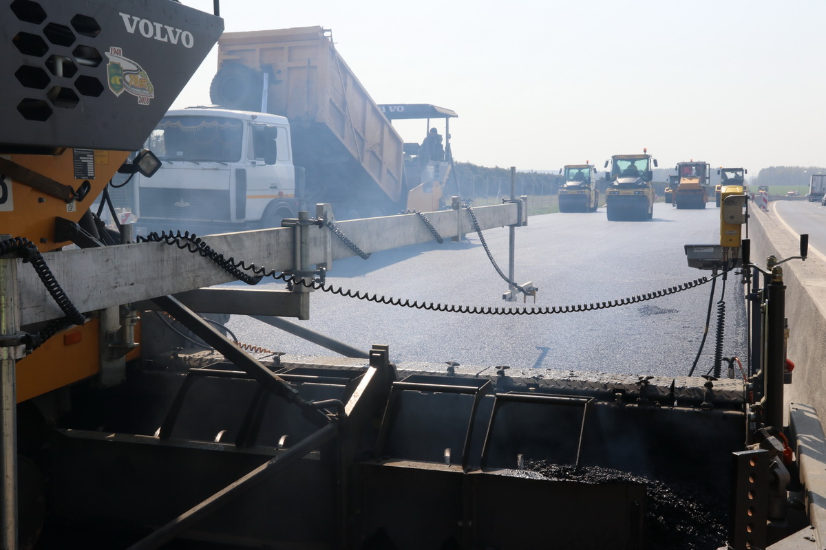 В соответствие с графиком, Подрядчики должны завершить устройство верхнего слоя по обоим направлениям до конца мая текущего года в настоящее время выполнено устройство верхнего слоя покрытия на полосе движения направления Гродно-Минск на 35 км. Завершены основные работы по строительству искусственных сооружений, ведутся укрепительные работы и устройство деформационных швов. Параллельно с устройством покрытия по основному ходу ведутся работы по завершению транспортных развязок, обустройству дороги, дорожной разметке.