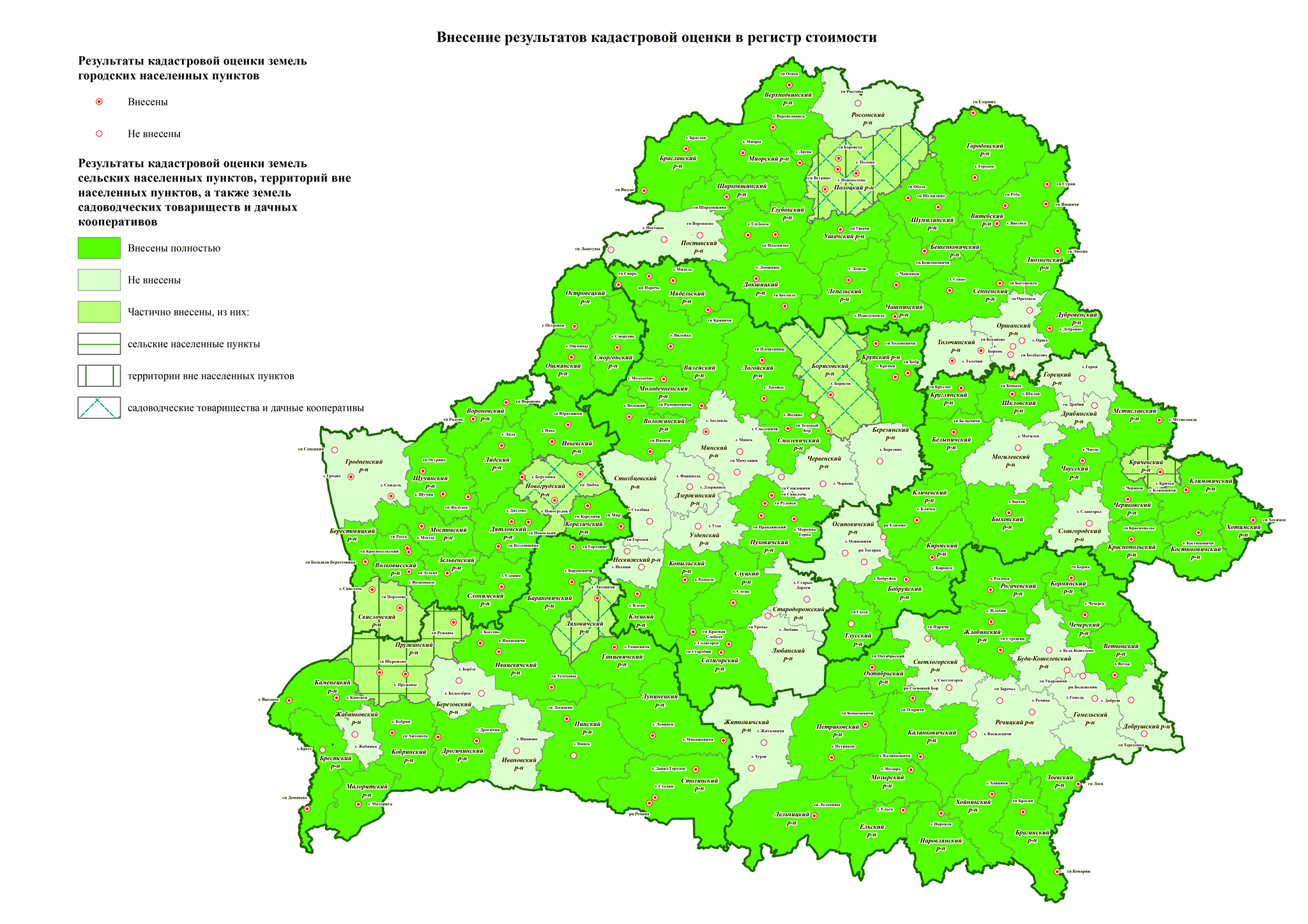 в Национальном кадастровом агентстве Госкомимущества (НКА), всего по стране в Регистр стоимости уже внесено более 70% территорий. Агентством получено более 80% решений исполкомов об утверждении результатов кадастровой оценки по видам функционального использования земель «жилая усадебная зона», «рекреационная зона» проведенной, а также земель садоводческих товариществ и дачных кооперативов.