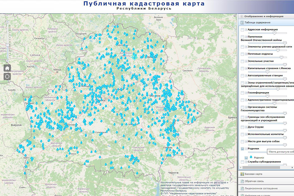 В рамках сотрудничества Национального кадастрового агентства и РУП «Центральный научно-исследовательский институт комплексного использования водных ресурсов» Министерства природных ресурсов и охраны окружающей среды слой «Родники» на Публичной кадастровой карте пополнен информацией о родниках и криницах Брестской (53 новых источника), Витебской (101) и Минской (100) областей.