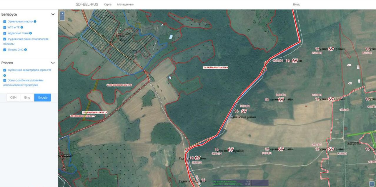 В частности, в рамках проекта по созданию инфраструктуры пространственных данных Смоленской и Витебской областей было разработано интернет-приложение Узла ИПД пограничных Руднянского и Лиозненского районов. Альфа-версию сервиса (предварительную) презентовали год назад на совместном заседании коллегий Госкомимущества и Росреестра, прошедшем в Горках (Беларусь).