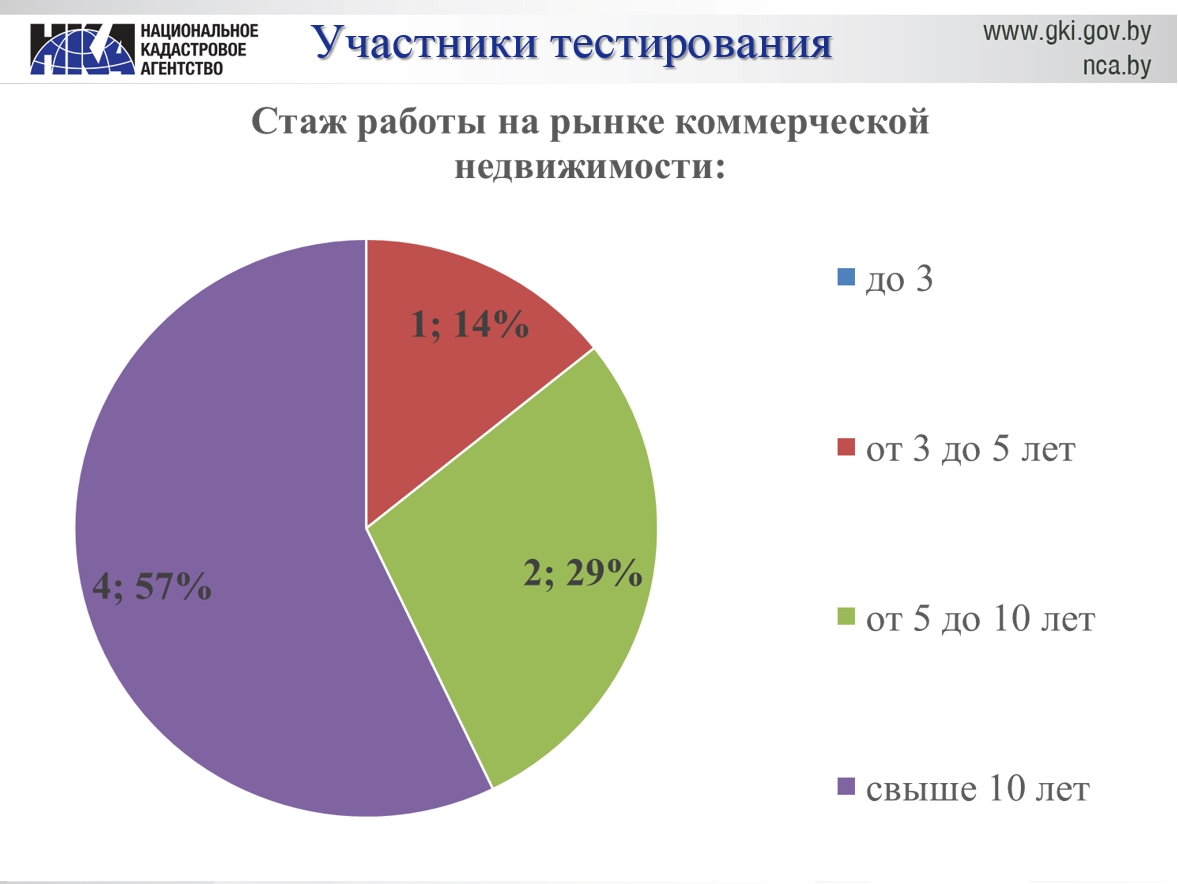 Стоит отметить, что участники являются профессионалами в своей деятельности, имеют стаж работы на рынке коммерческой недвижимости в основном свыше 10 лет и ежегодно выполняют 30-50 независимых оценок объектов коммерческой недвижимости на рынке г. Минска.