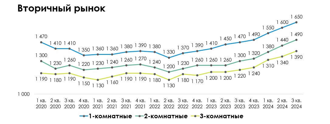 Средние цены сделок на вторичном рынке в сентябре на двухкомнатные квартиры не изменились, однокомнатные квартиры (-0,6%) и трехкомнатные квартиры (-0,7%) незначительно снизились к показателям августа.