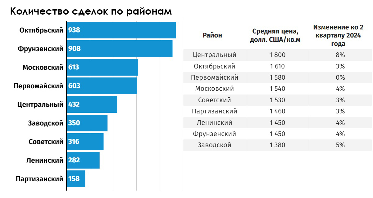 Количество сделок в 3-м квартале ко 2-му кварталу увеличилось в Витебске (+11%) и Бресте (+6%), при этом в Гродно, Гомеле и Могилеве практически не изменилось.