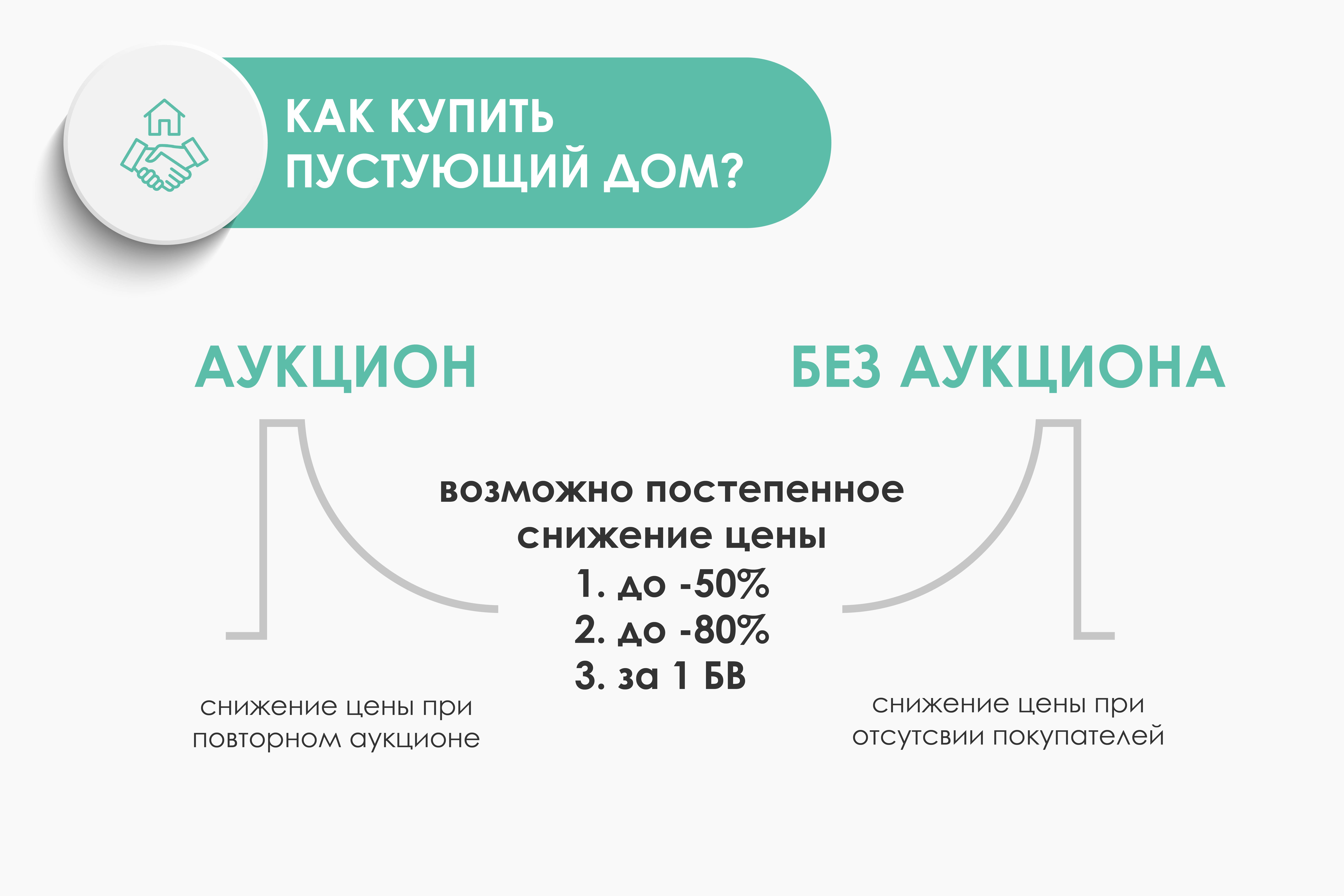 Продажа пустующих жилых домов возможна на аукционе, без его проведения, а также в формате электронных торгов.