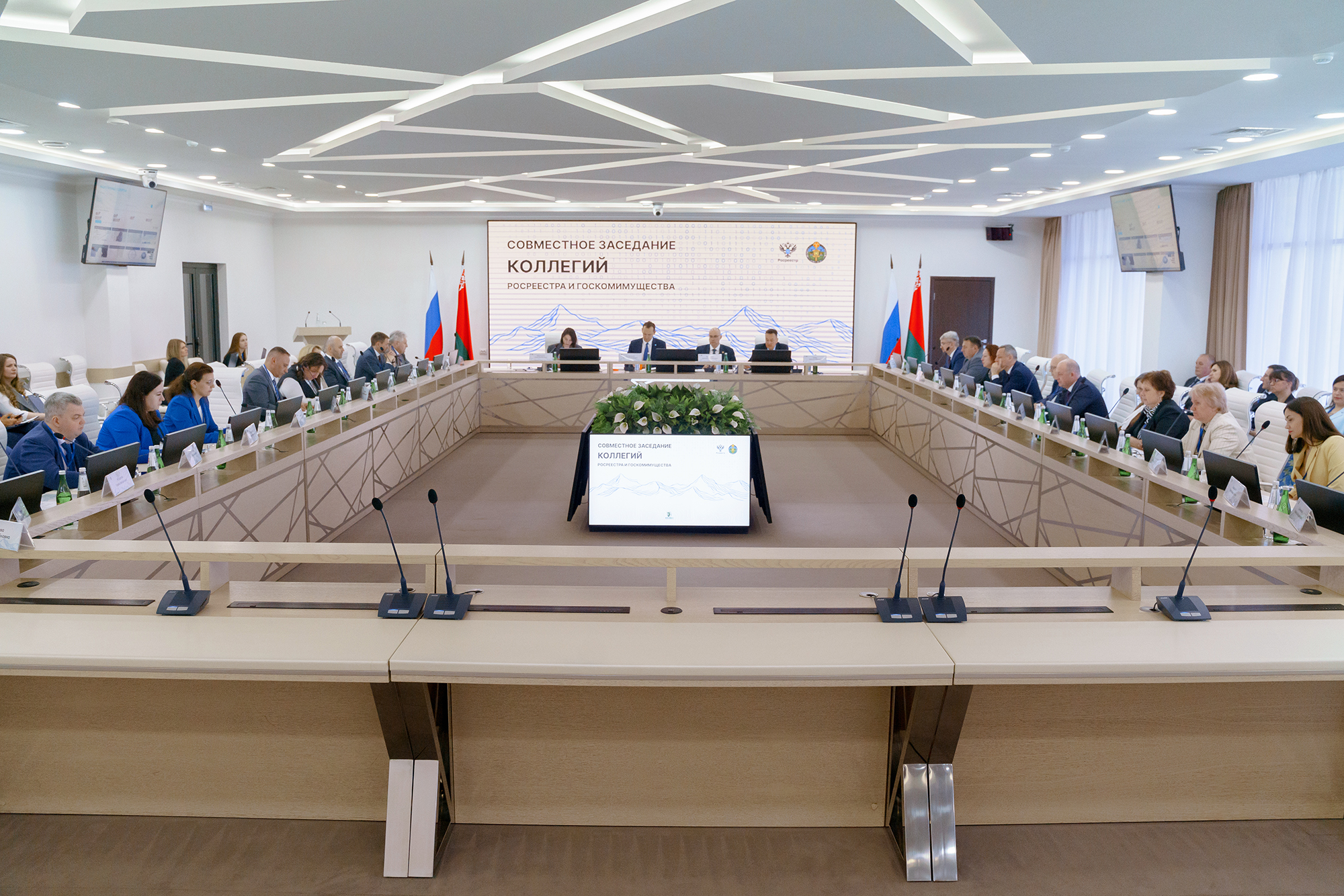 В рамках совместного заседания коллегий были представлены отчеты рабочих групп по государственному геодезическому обеспечению, созданию совместных российско-белорусских картографических произведений, обмену опытом в области кадастровой оценки земельных участков и объектов недвижимости, а также Экспертного совета по инфраструктуре пространственных данных.