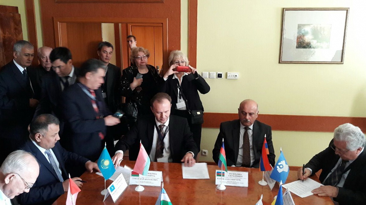 Беларусь на XXXVIII сессии Межгоссовета представили Председатель Государственного комитета по имуществу Республики Беларусь Андрей Гаев и заместитель генерального директора ГУП «Национальное кадастровое агентство» Государственного комитета Республики Беларусь Сергей Левчик.