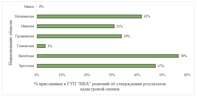 Как сообщили в Национальном кадастровом агентстве Госкомимущества, по состоянию на 4 августа 2017 года количество возвратившихся решений об утверждении результатов кадастровой оценки земель в среднем по республике составляет 36%, а по областям процентное соотношение следующее: