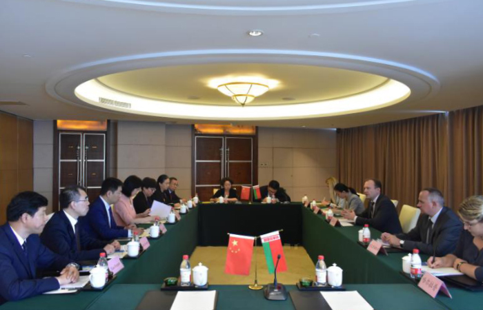 В ходе визита группы высокого уровня в Китайскую Народную Республику 23 августа 2018 г. состоялась рабочая встреча, в которой приняли участие Председатель Государственного комитета по имуществу Республики Беларусь Андрей Гаев и Заместитель Председателя Комитета по контролю и управлению государственным имуществом при Государственном совете Китайской Народной Республики Шэнь Ин.