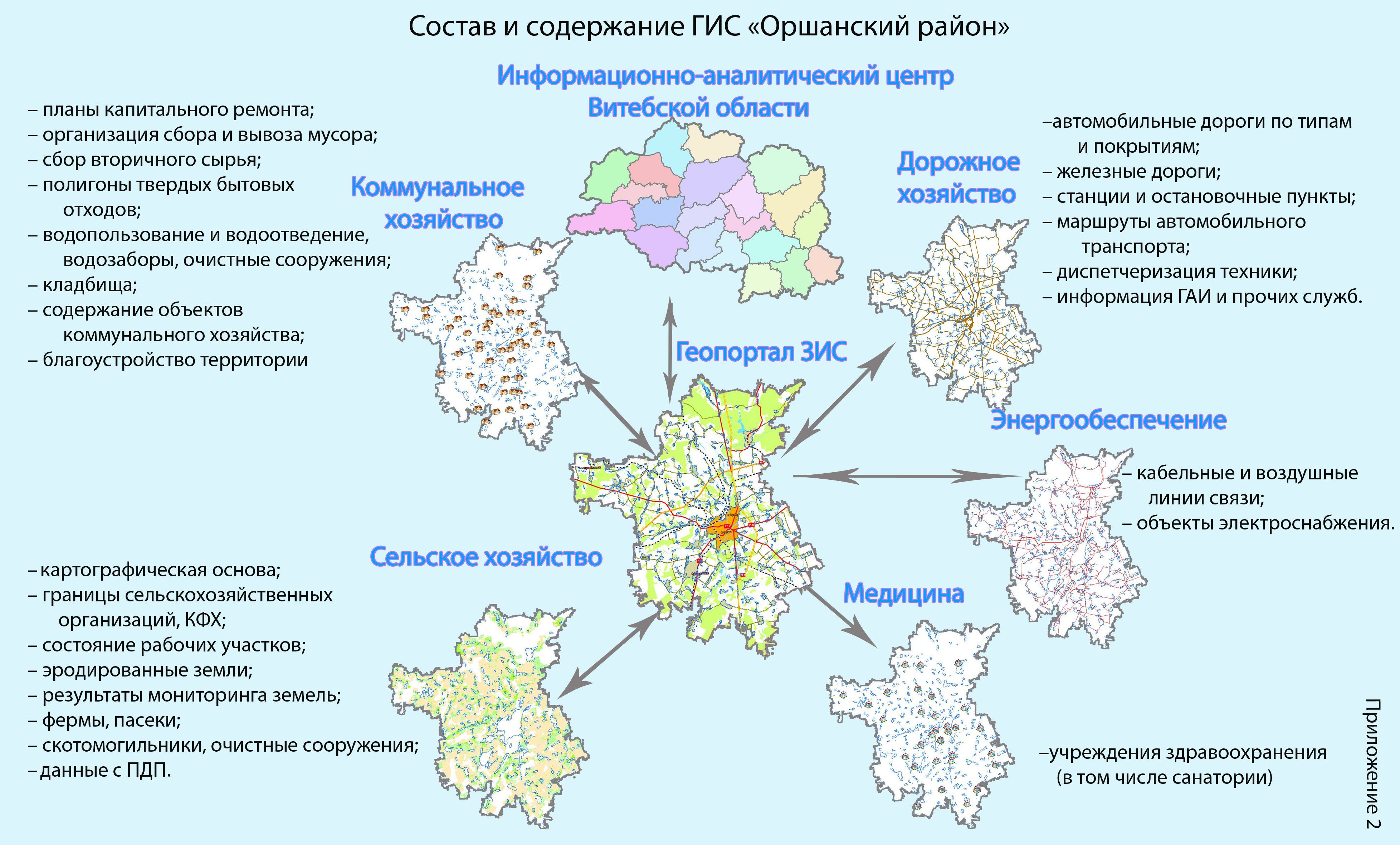 Геоинформационная система на территорию Оршанского района создается на основе Геопортала ЗИС и будет включать набор информационных слоев по различным вопросам жизнедеятельности района. Функцию поставщиков информации для этих слоев планируется закрепить за различными службами, организациями, подразделениями исполкома и иными организациями.