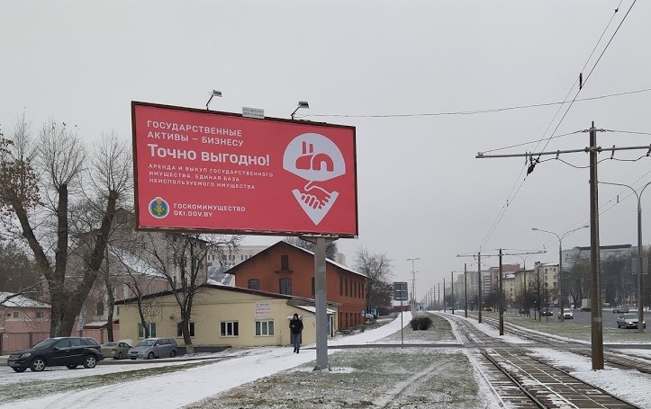 Плакаты размещены в 30 городах. Кроме столицы, наружную социальную рекламу Государственного комитета по имуществу на билбордах видят жители и гости Бреста, Витебска, Гомеля, Гродно и Могилева, ряда иных городов областного, а также районного подчинения.