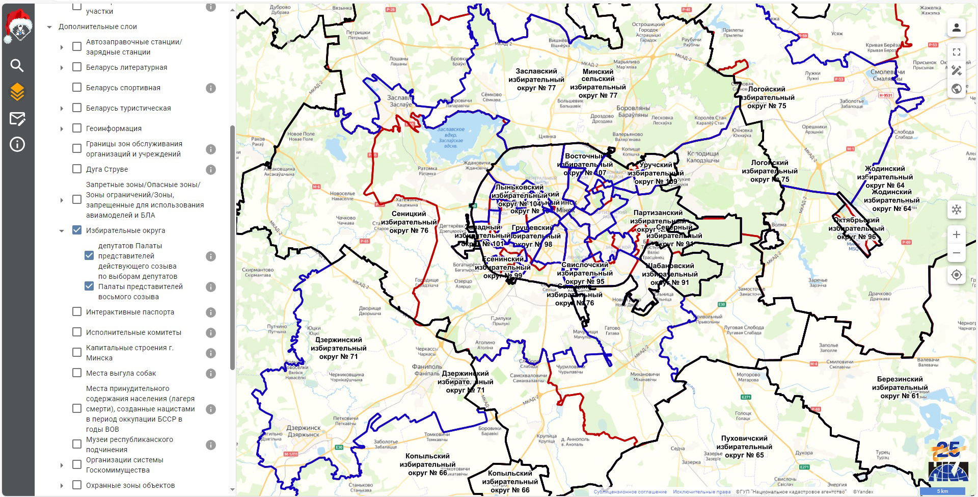 публичную кадастровую карту. В меню «Слои» (пиктограмма слева) необходимо перейти в пункт «Дополнительные слои», где раскрыть раздел «Избирательные округа».