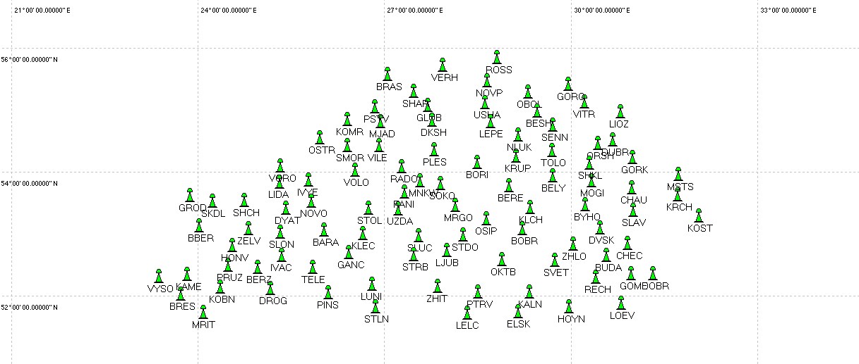 Всего в опытную эксплуатация очередного этапа (второй этап третьей очереди) создания Спутниковой системы точного позиционирования Республики Беларусь (ССТП РБ) 1 августа 2016 года было включено 8 постоянно действующих пунктов: Бешенковичи (BESH), Довск (DVSK), Докшицы (DKSH), Дубровно (DUBR), Комарово (KOMR), Мстиславль (MSTS), Лоев (LOEV), Хоневичи (HANV).