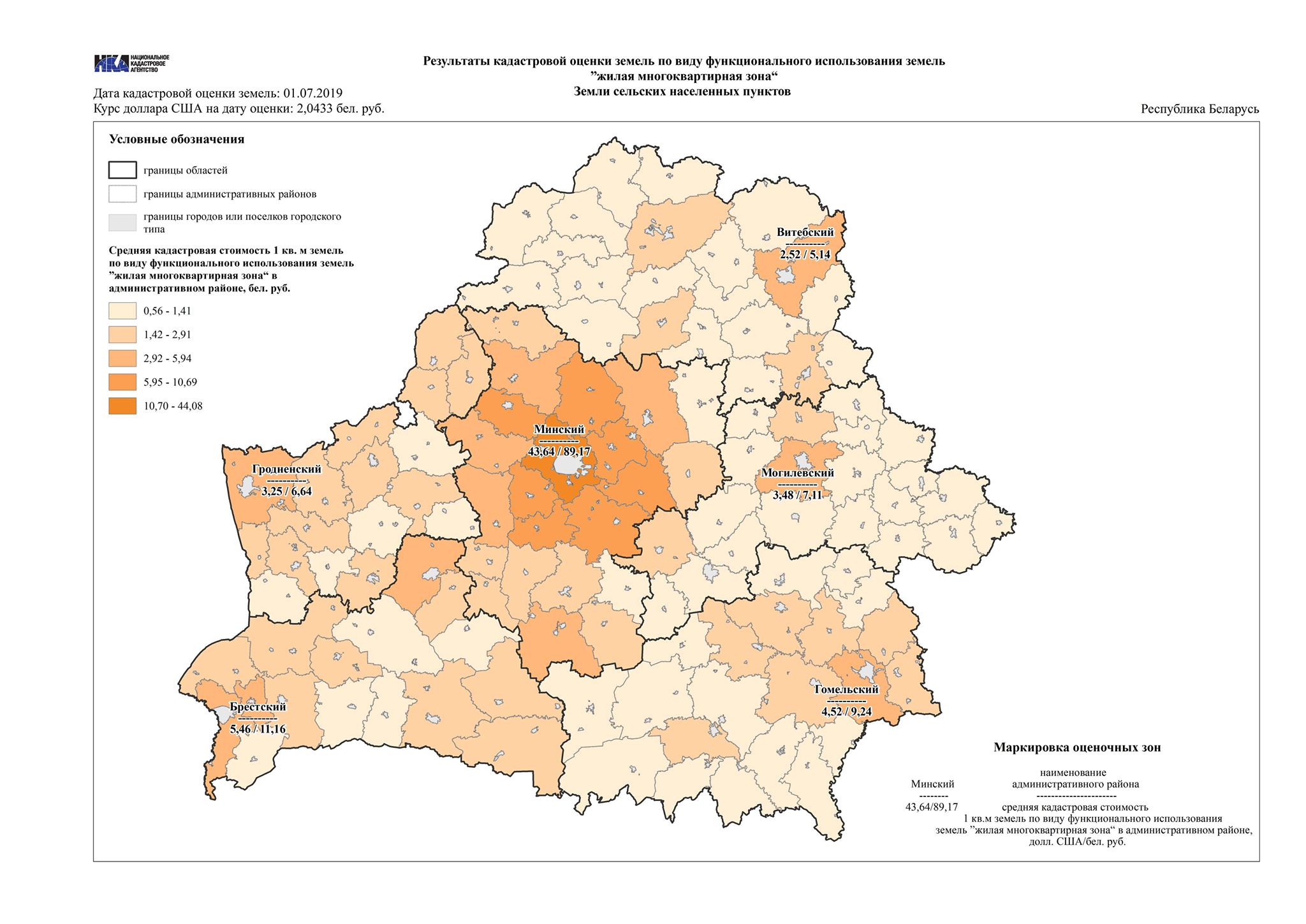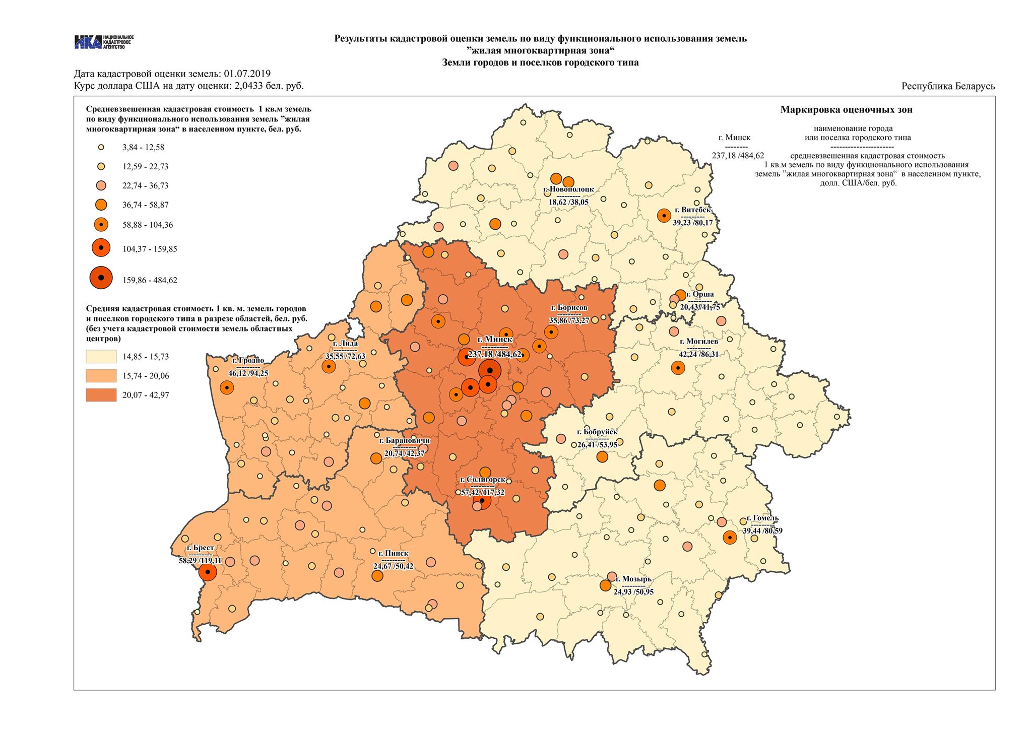 Национальное кадастровое агентство Госкомимущества завершило работы по кадастровой оценке земель жилой многоквартирной зоны по состоянию на дату оценки 1 июля 2019 года.