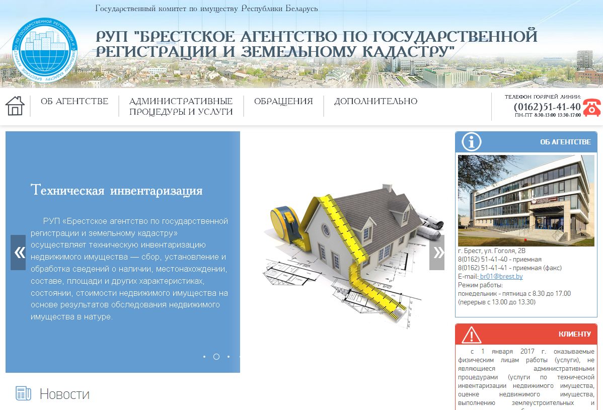 Новая версия сайта Брестского агентства по государственной регистрации и земельному кадастру разработана специалистами агентства без привлечения сторонних разработчиков.