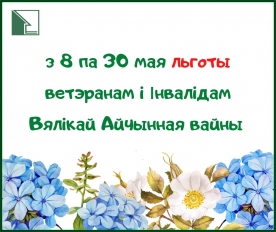 В связи с празднованием 75-летия Победы советского народа в Великой Отечественной войне РУП «Минское областное агентство по государственной регистрации и земельному кадастру» предоставляет льготы ветеранам и инвалиды Великой Отечественной войны.