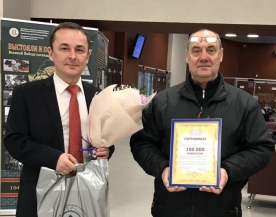 Юбилейного 100-тысячного клиента, которым стал Леонид Лукомский, обратившийся по вопросу государственной регистрации, поздравили цветами, памятным сувениром и вручили специальный сертификат юбилейного клиента.