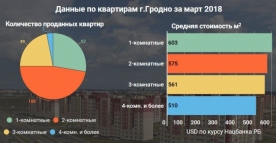 По данным анализа сделок, проведенного Гродненским агентством по госрегистрации и земельному кадастру, по количеству проданных традиционно лидировали 2-х комнатные квартиры. Всего за март в Гродно было заключено 106 договоров купли-продажи.