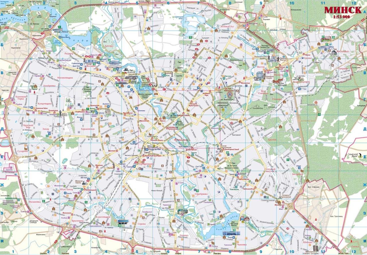 У прыватнасці, на карце «Мінск. Турысцкая карта» на рускай мове, падрыхтаванай у маштабе 1:53 000, цэнтр горада адлюстраваны больш падрабязна - у маштабе 1:12 000. На карце паказаны асноўныя славутасці горада з фотаздымкамі, адрасамі і кароткім апісаннем. Даведачная і іншая інфармацыя, якая змяшчаецца на карце, аб важных для турыстаў аб'ектах з указаннем адрасоў і тэлефонаў дыпламатычных прадстаўніцтваў, гасцініц, музеяў, асноўных спартыўных комплексаў, рэстаранаў беларускай кухні дапаможа лепш пазнаёміцца з беларускай сталіцай і выбраць цікавыя для наведвання месцы.