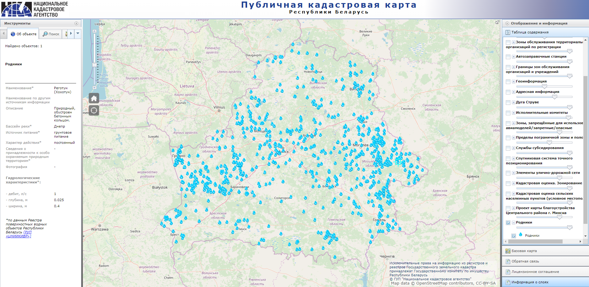 В рамках взаимодействия Национального кадастрового агентства Госкомимущества и Центрального научно-исследовательский института комплексного использования водных ресурсов Министерства природы и охраны окружающей среды слой «Родники» пополнился 259 объектами, расположенными на территории Гродненской и Могилёвской областей.