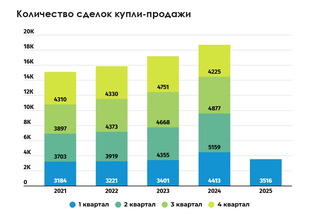 За 1 квартал 2025 года суммарно в областных городах совершено почти 3 тысячи сделок: