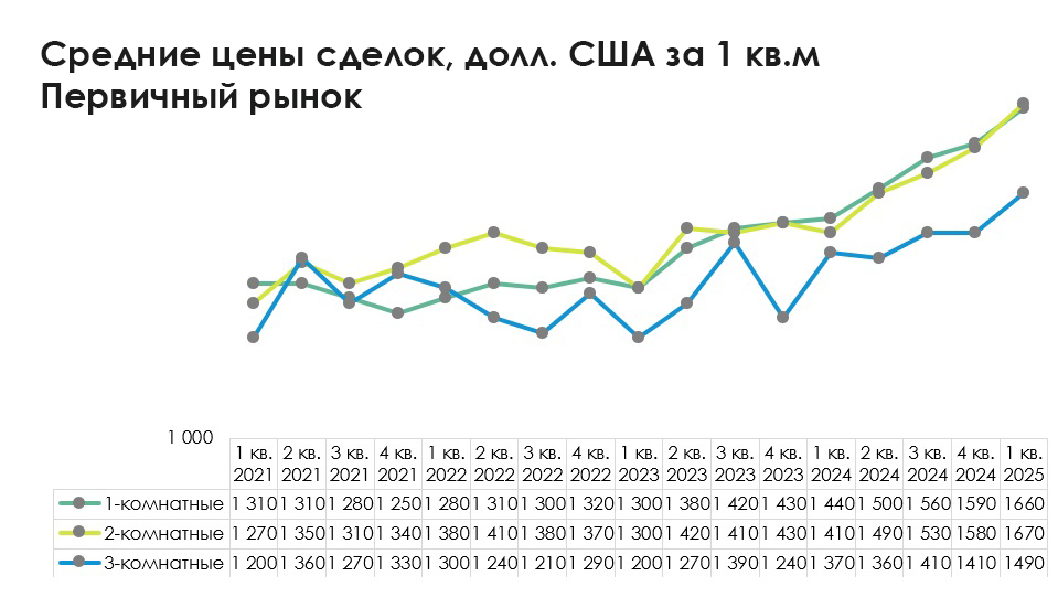 Всего за 1 квартал 2025 года было продано 180,6 тысяч квадратных метров квартир, денежный оборот от продажи которых составил 300,8 миллионов долларов США в эквиваленте.