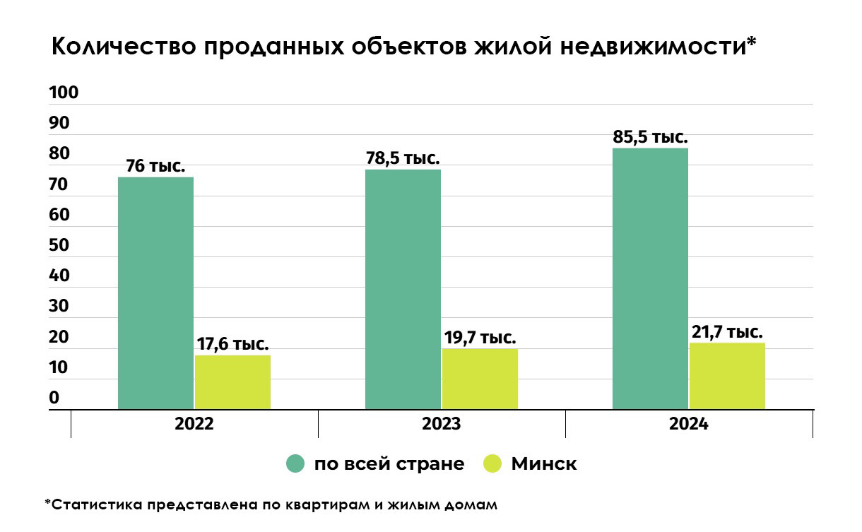 Стабильно высокий спрос: в 2024 году в Беларуси было продано 85,5 тыс. объектов жилой недвижимости
